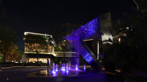 艺术构筑物将展示与互动体验巧妙融合,设置灯光、水帘、旱喷水景互动装置,为居者打造亲子互动的沉浸式体验场所。