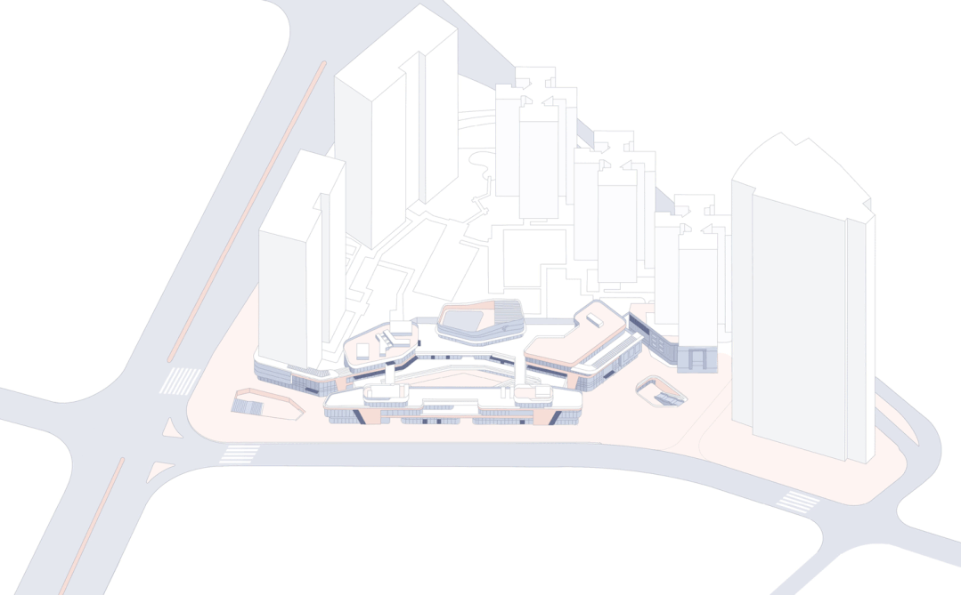 通过空中、地面、地下三大维度的立体复合型交通导流设计,将片区的商业、写字楼、公共文化设施等实现空间联动,形成区域整体式发展的“聚合磁场”。