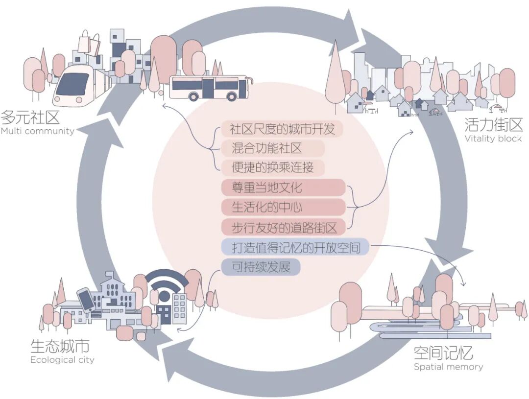 随着时代的发展,空间使用者对于景观的审美与需求也在不断更新与提升,从功能需求到简易美陈,主题街区到沉浸式体验,这些都要求建设者与设计者不断提升认知与思考方式。在和颂轩设计之初万科&深国际联合GND杰地景观从使用者的角度出发,对目标客群、行业趋势及成功案例进行深度分析和研究,总结出新时代可持续发展城市建设的新模式。