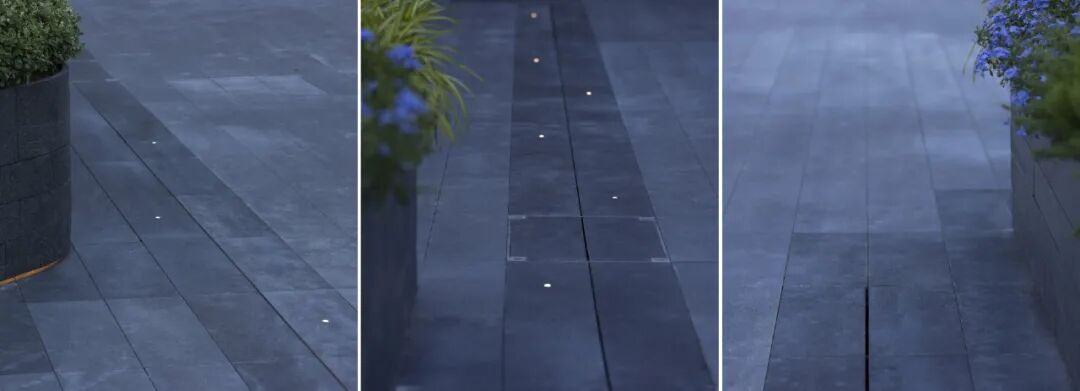 整个广场采取隐蔽式排水设计,完美的解决了排水篦子外露影响美观的诟病,使地面铺装设计不受井位影响,还对广场地面竖向设计起到一定优化作用,使地面找坡排水方向更加简便有序。同时通过对场地土壤和植被的综合利用实现对雨水的处理,减小市政排水压力,满足了高品质要求的景观效果。