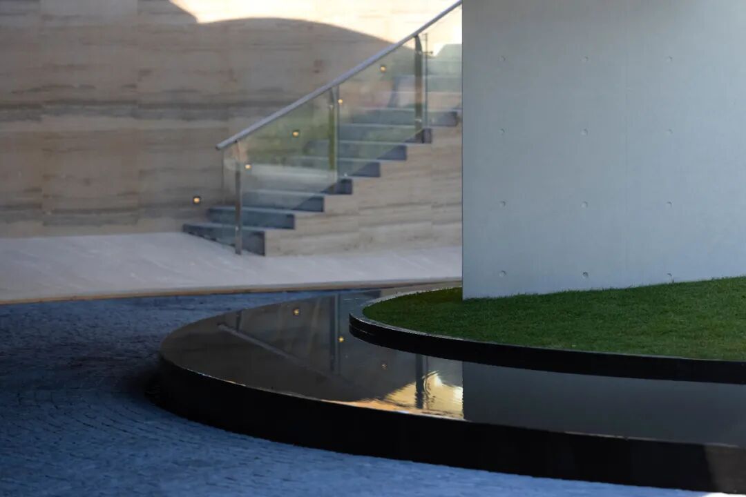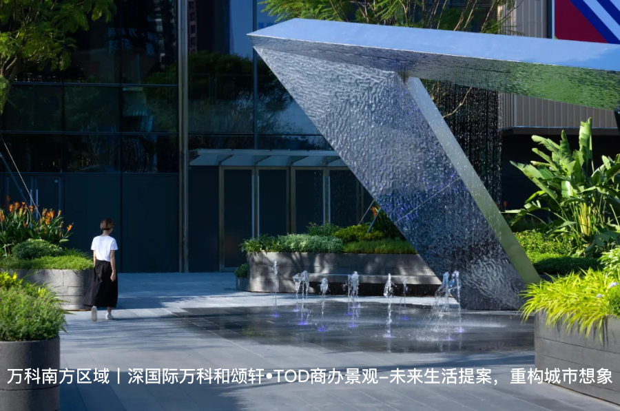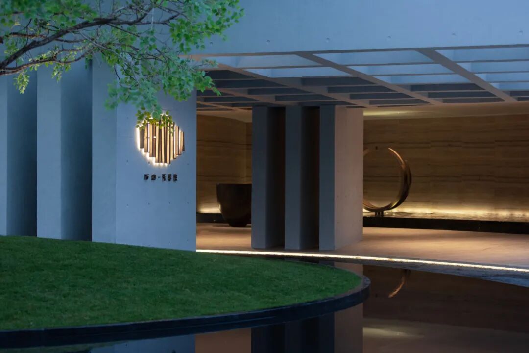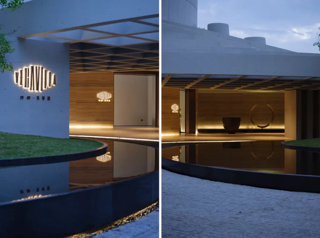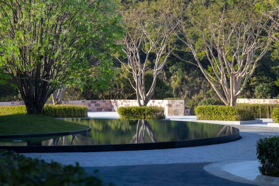 潋滟镜面水景,传达出深邃而流畅的灵动之美。同时水景柔化了原来建筑生硬的立面,使建筑和景观相辅相成。
