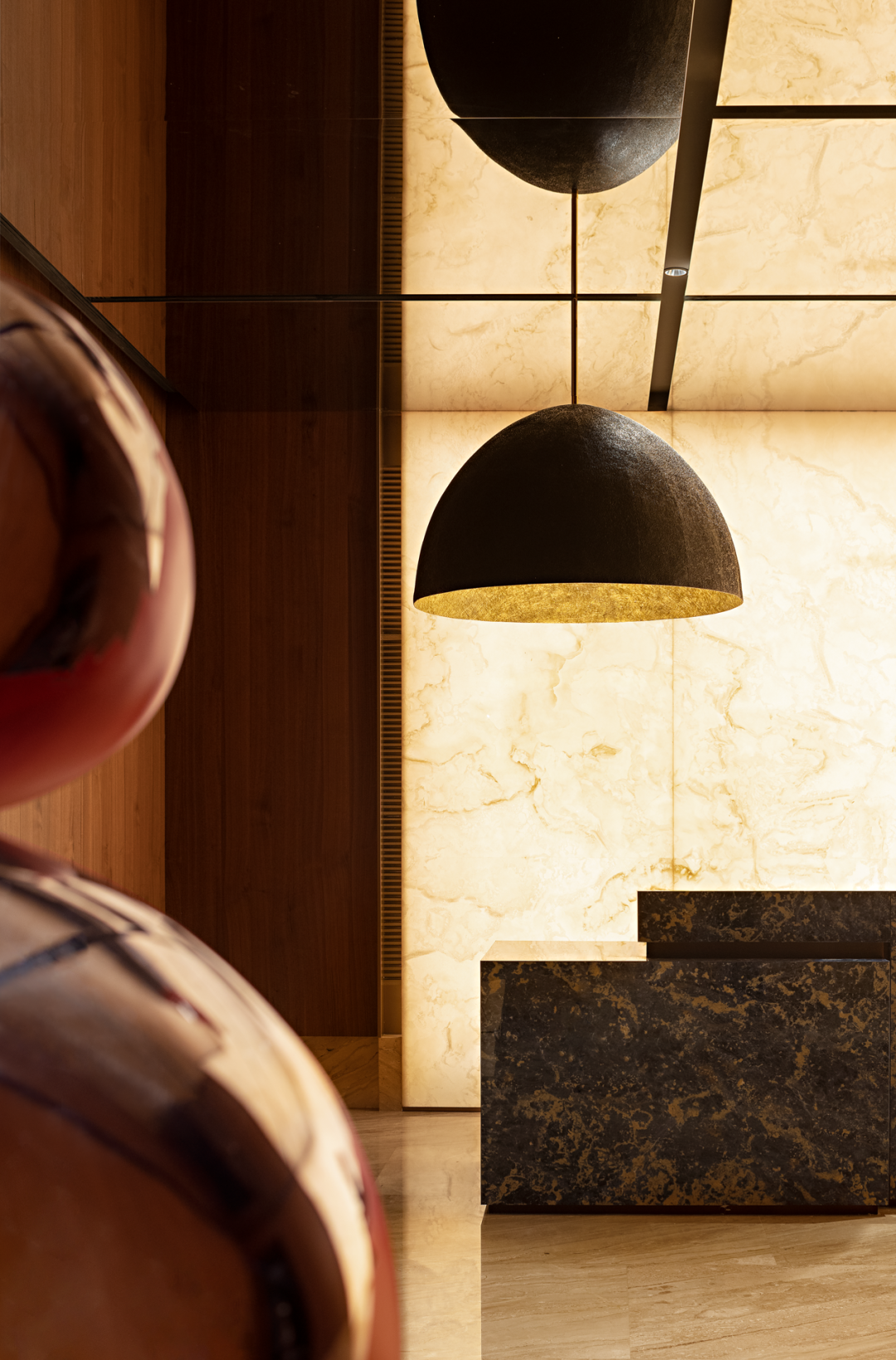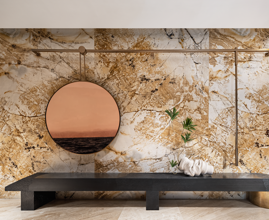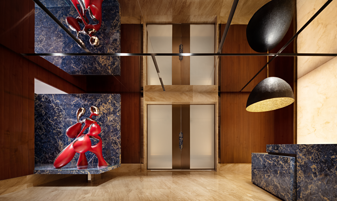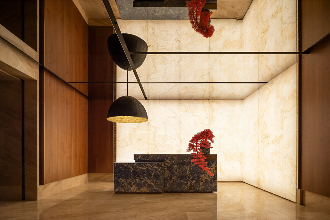 设计对前厅不遗余力的雕琢,是迎接最崇高的礼遇。玉石的通透与质感,氤氲出别具一格的云蒸霞蔚镜像。
