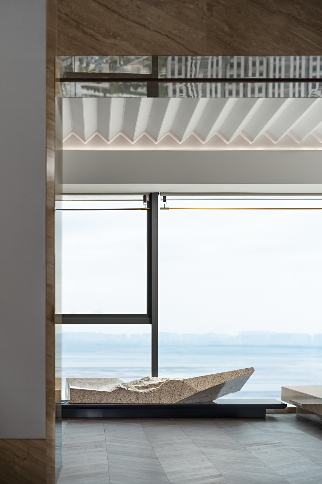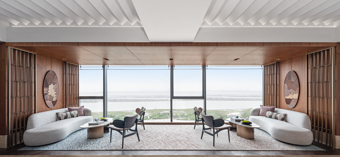 凭栏极目海阔处,气势旷达天涯远。休闲洽谈区作为近海楼台的盛景之首,将“引海景入户”的设计理念发挥得淋漓尽致。