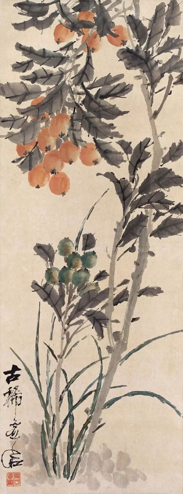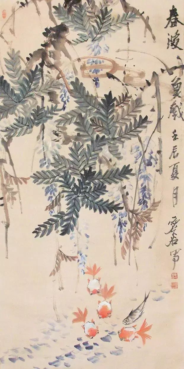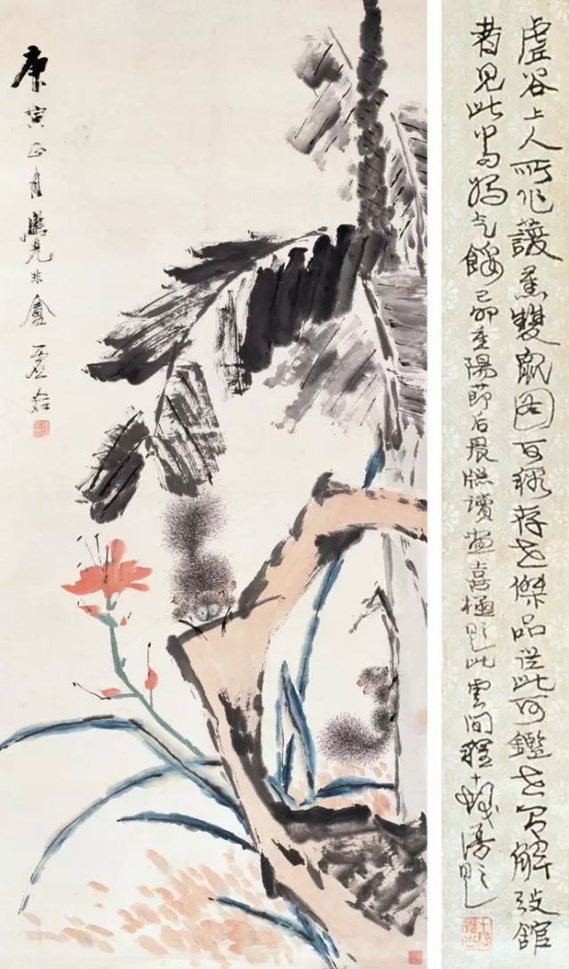 虚谷作画笔墨老辣而奇拙。运用干笔偏锋,风格冷峭新奇,隽雅鲜活,无一带滞相,匠心独运,开具一格,海派大师吴昌硕赞其为“一拳打破去来今”。