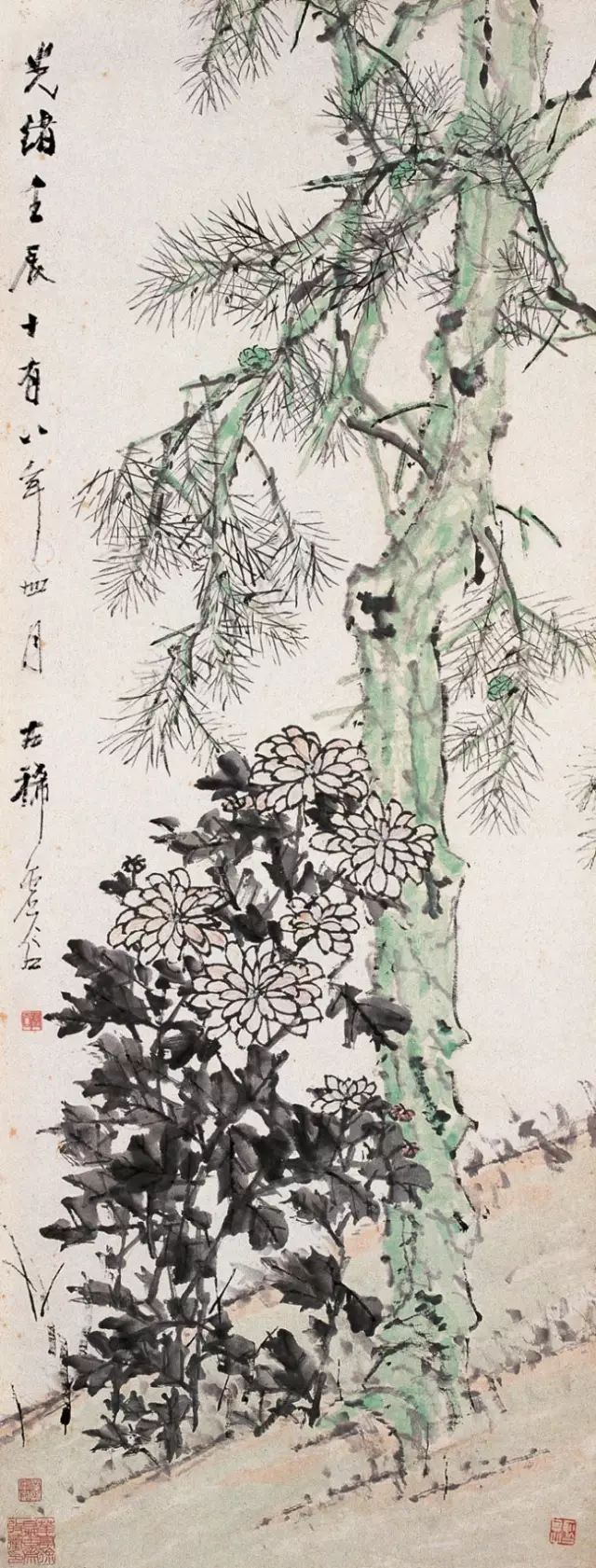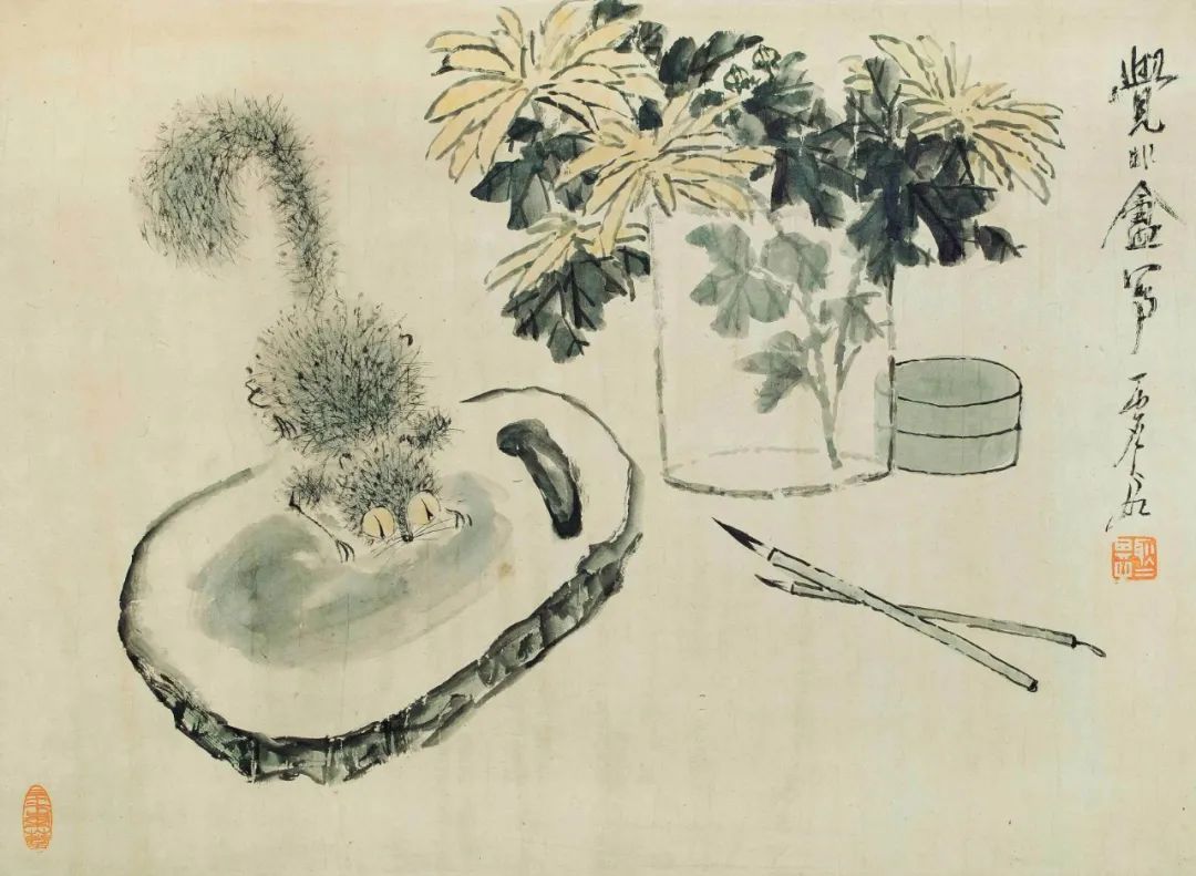 虚谷作画行笔用线是宁方勿圆,顿中见力,见棱见角,下笔肯定,有着强烈的个性。