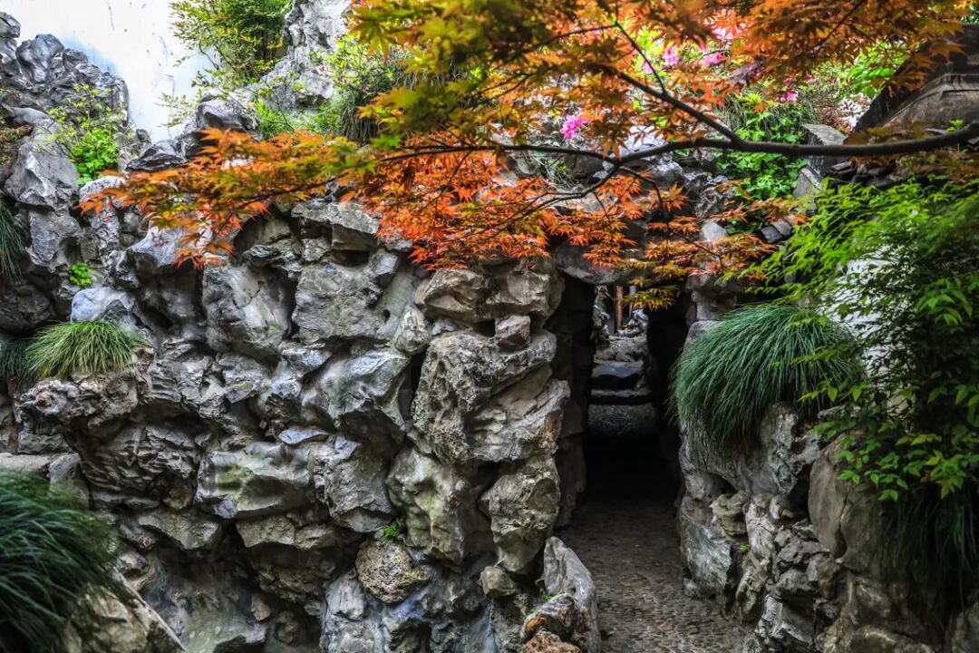 左边是芝园,其间有回廊相连,曲池相通,亭、台、楼、阁,高低错落,碑廊、石栏、小桥、水亭,款款用心,步步是景。
