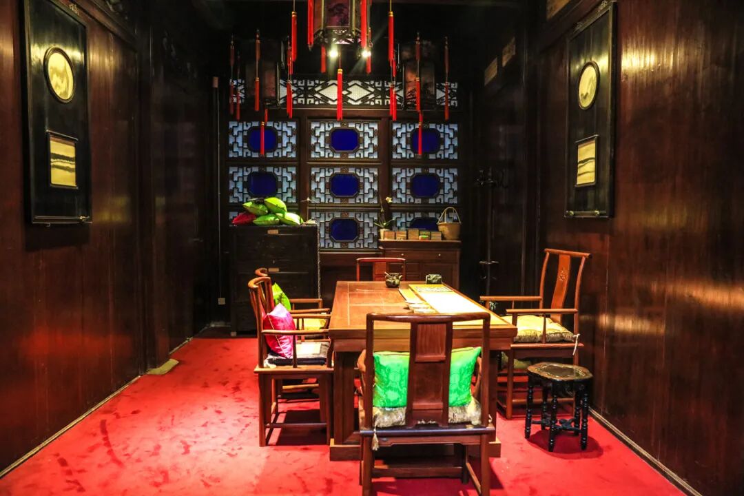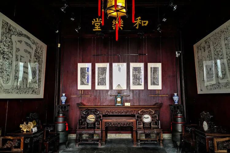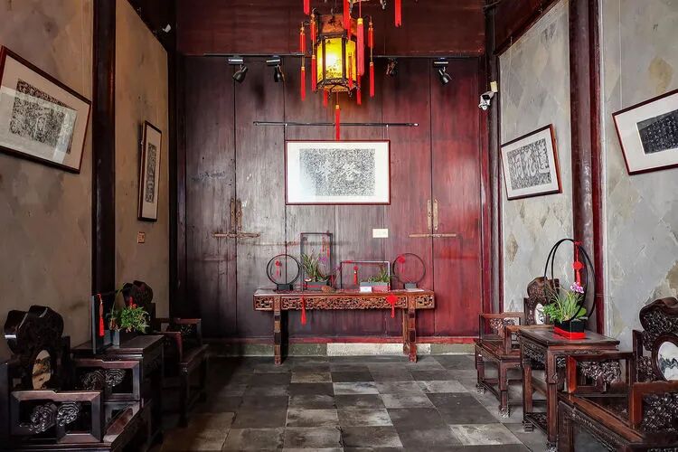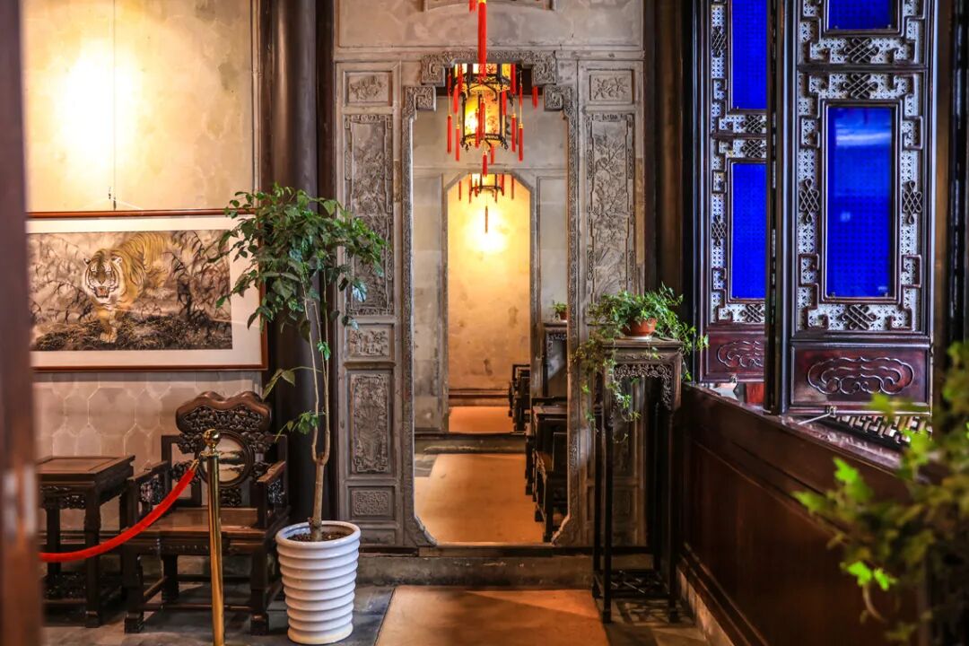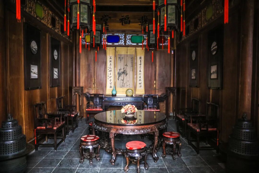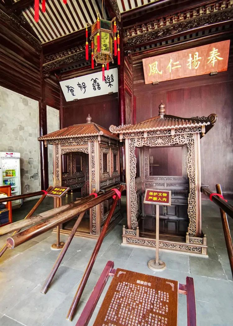 步入府内,是一个较宽阔的门厅,让人豁然开朗,左手边是五开间的轿厅,整座大厅都是由银杏木建造而成,更为亮眼的是两顶极为稀有的做工考究的红木官轿,很是值得欣赏一番。