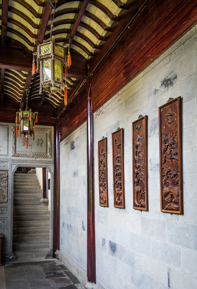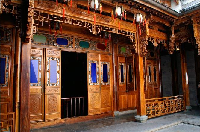 以东侧院落的和乐堂为例,和乐堂柱子用南洋杉、栏杆为紫檀木、格窗用花梨木等制成,每间房都有精美的砖雕门洞,刻画着神仙、动植物等形象。