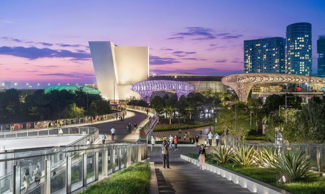 深圳宝安欢乐港湾包含数个板块:东岸商业街区、西岸商业街区、海滨文化公园、海府一号商务区、演艺中心。项目的总体规划方案由LLA完成,通过对公园游览流线、景观元素及公共空间的精心规划,使得它们与项目的文化、艺术、商业、商务、交通等功能业态有机融合,相辅相成,相得益彰。