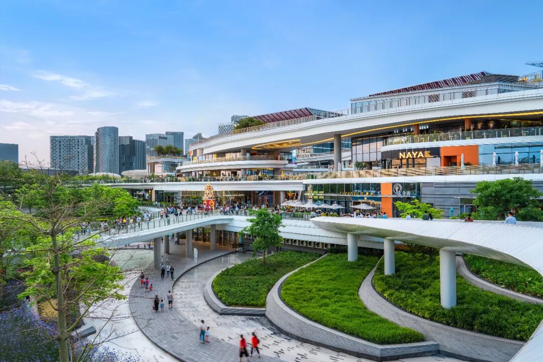 2021年初开业的欢乐港湾东岸商业街区计容总建筑面积为3万5千平方米,它西连中央入口广场,东临“湾区之光”摩天轮,北靠“海府一号”商务区,南接公园立体景观。流畅的造型姿态、立体的动线组织、丰富的空间流转、开阔的视野景致,使其成为公园和项目的亮点和打卡地,它远远突破了商业设施单一身份和功能,在艺术性、观赏性、体验感等方面为整个项目增光添彩。