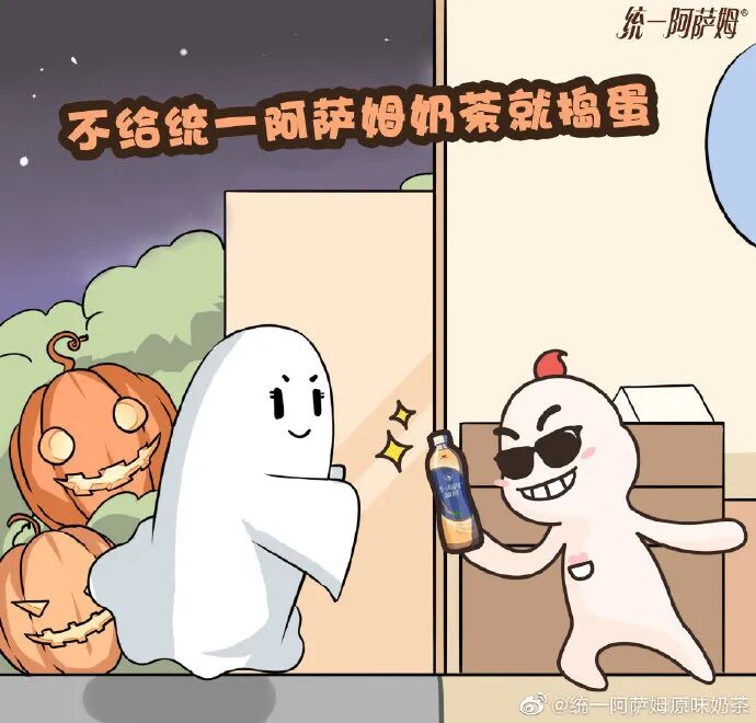 #每日好心情打卡#阿萨姆君偷偷告诉你一个“鬼”故事:今晚将有大波“鬼怪”出没!有没有听到敲门声?别慌,拿出统一阿萨姆奶茶招待他们,畅饮好心情~和捣蛋鬼们一起“鬼混”#万圣节#