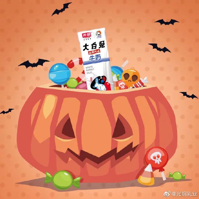 #万圣节# 又到了“不给糖就捣蛋”的日子,抢不到糖果怎么办?送你一瓶大白兔风味牛奶,给你糖果的味道,也给你童年捣蛋的回忆!