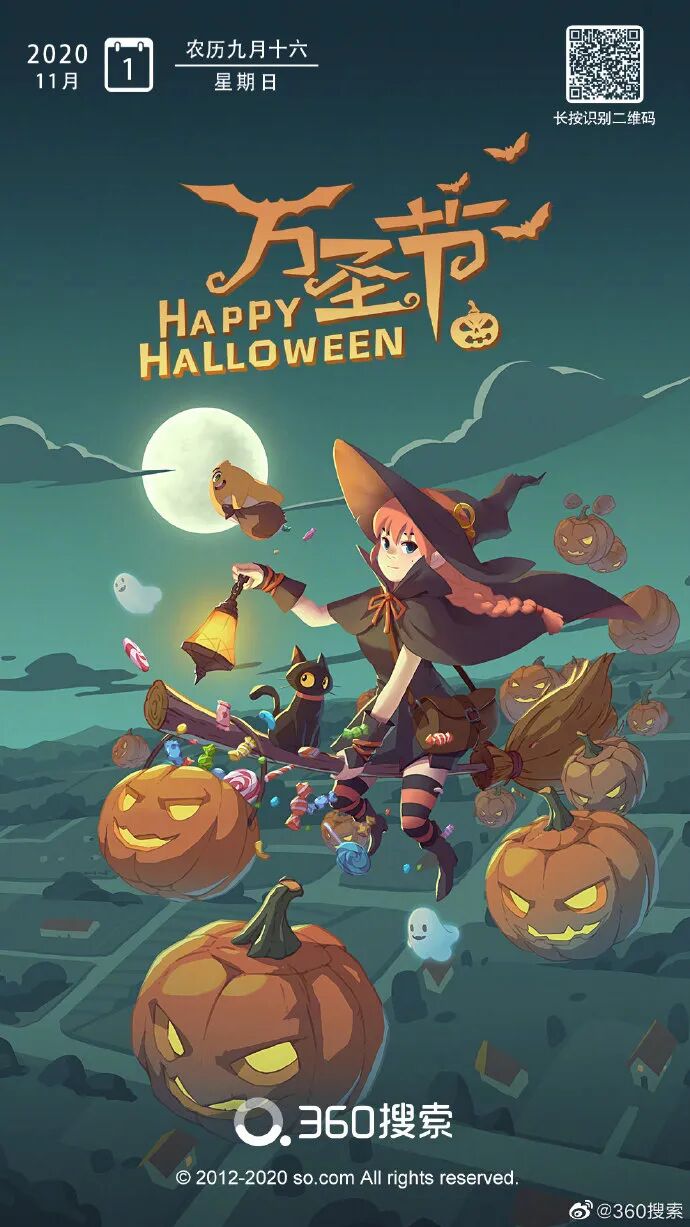 Knock Knock Trick or Treat ?万圣节快乐~万圣节又是诸圣节,也是西方鬼节。想要知道更多关于万圣节的知识,快来搜索一下~360搜索,SO 靠谱