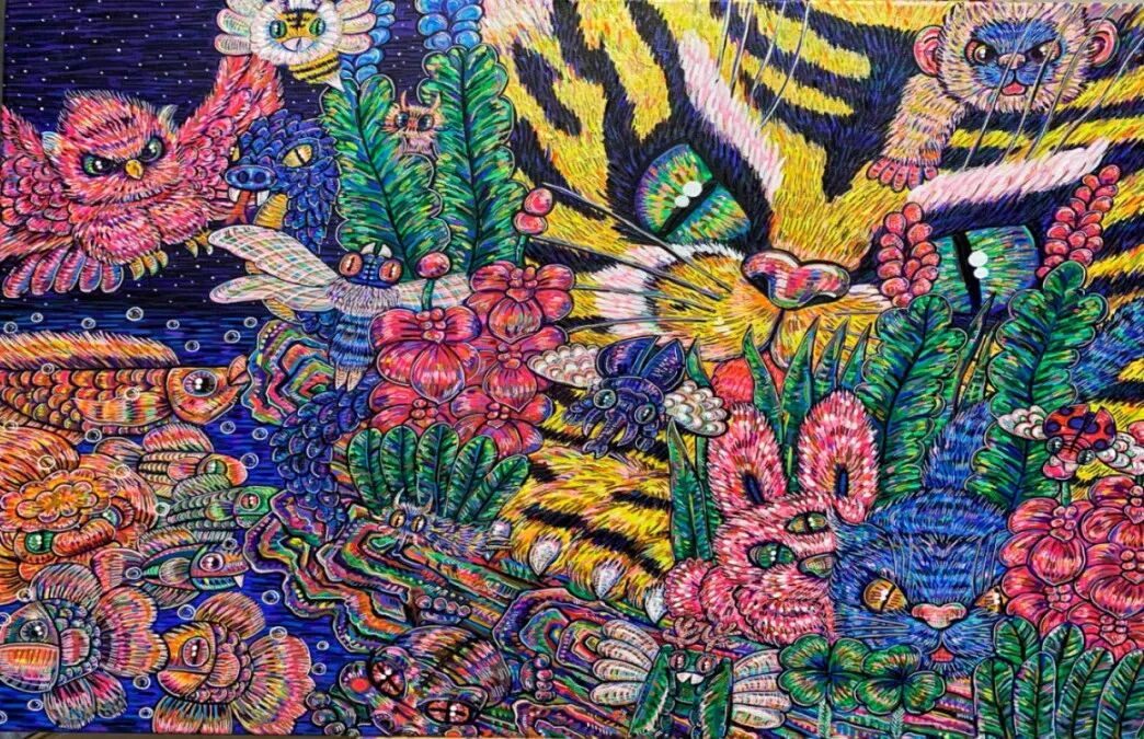 他坚持每天创作,以时间和情感浸润作品中的生灵,营造繁复独特的绘画故事世界。