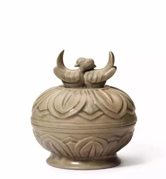 五代/北宋 越窯青釉刻蓮紋鴛鴦鈕圓盒