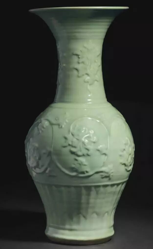 龍泉青釉印纏枝牡丹紋鳳尾尊