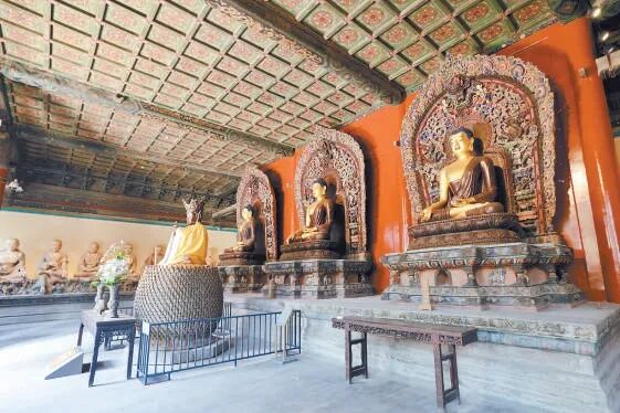 本次开放区域主要为万寿寺中路前六进院以及东路方丈院,方丈院为腾退修缮后首次对公众开放。观众们可以看到经过修复的山门殿顶彩绘“洪福齐天”,以及慧日长辉殿内原状陈列的佛像等万寿寺重要历史文物遗存。