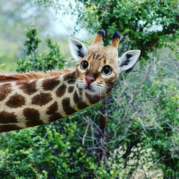 想象一下,长颈鹿、老虎、海豹长着一张猫的脸,会是什么画面?是不是光靠想象就会觉得十分有趣呢?让我们一起来看一下加利娜·布加耶夫斯卡娅最近创作“魔性十足”的猫图片吧。
