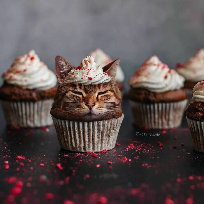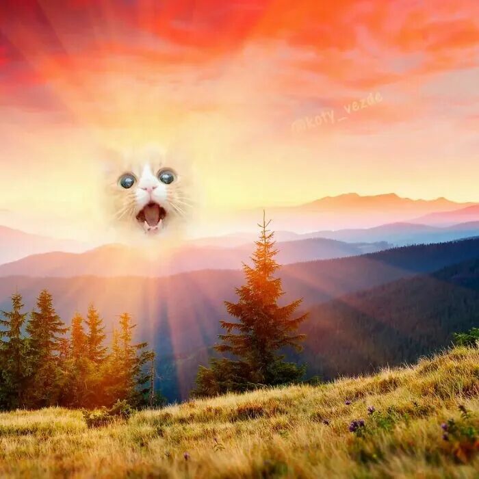这组创意作品被加利娜·布加耶夫斯卡娅命名为“猫无处不在”,从她的创意图片中,就能体现出这个主题,她将猫的脸利用设计软件融合到各种动物身上,除了动物之外,植物、食物和日常用品竟然也可以与猫的脸进行融合,这种融合后的图片,本身没有什么特殊之处,却让每个人看到的人,都感觉到快乐。
