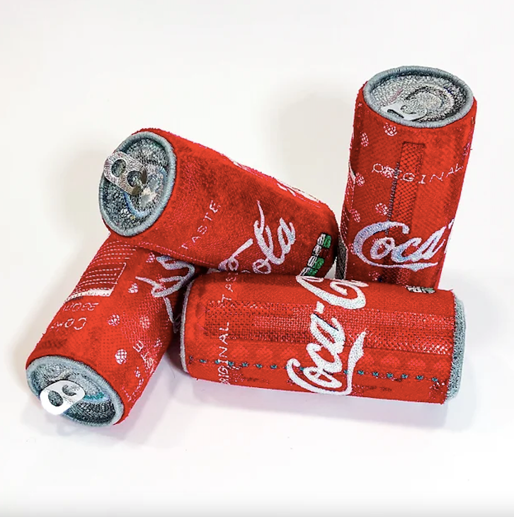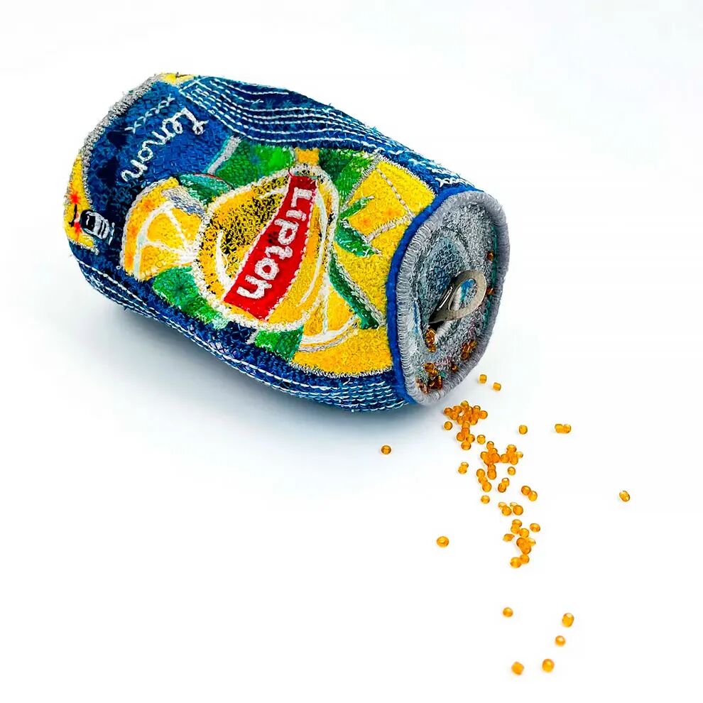 艾丽卡·科兹沃斯卡的刺绣作品,参考的对象主要以快消品为主,有许多我们常见的品牌,通过细致的绣制和编织,如果不仔细去观察,很容易被人们误认为是真实的物品,看到这些知名品牌的产品被制作成刺绣作品,相信很多人都会感觉到新鲜。
