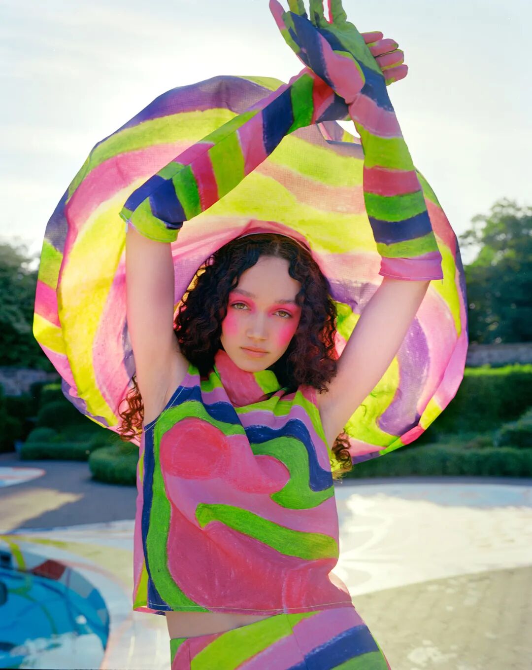 来自香港的设计师Celine Kwan在疫情期间被迫居家,在家中的空间中开始回忆起日常生活中的小细节,从而回忆起日常美好的一些瞬间,在她的系列中,Celine Kwan想创造一个家中的乌托邦景象,同时从上世纪六七十年代产品设计中获得灵感,并把一些有趣的廓形和元素运用于服装中。