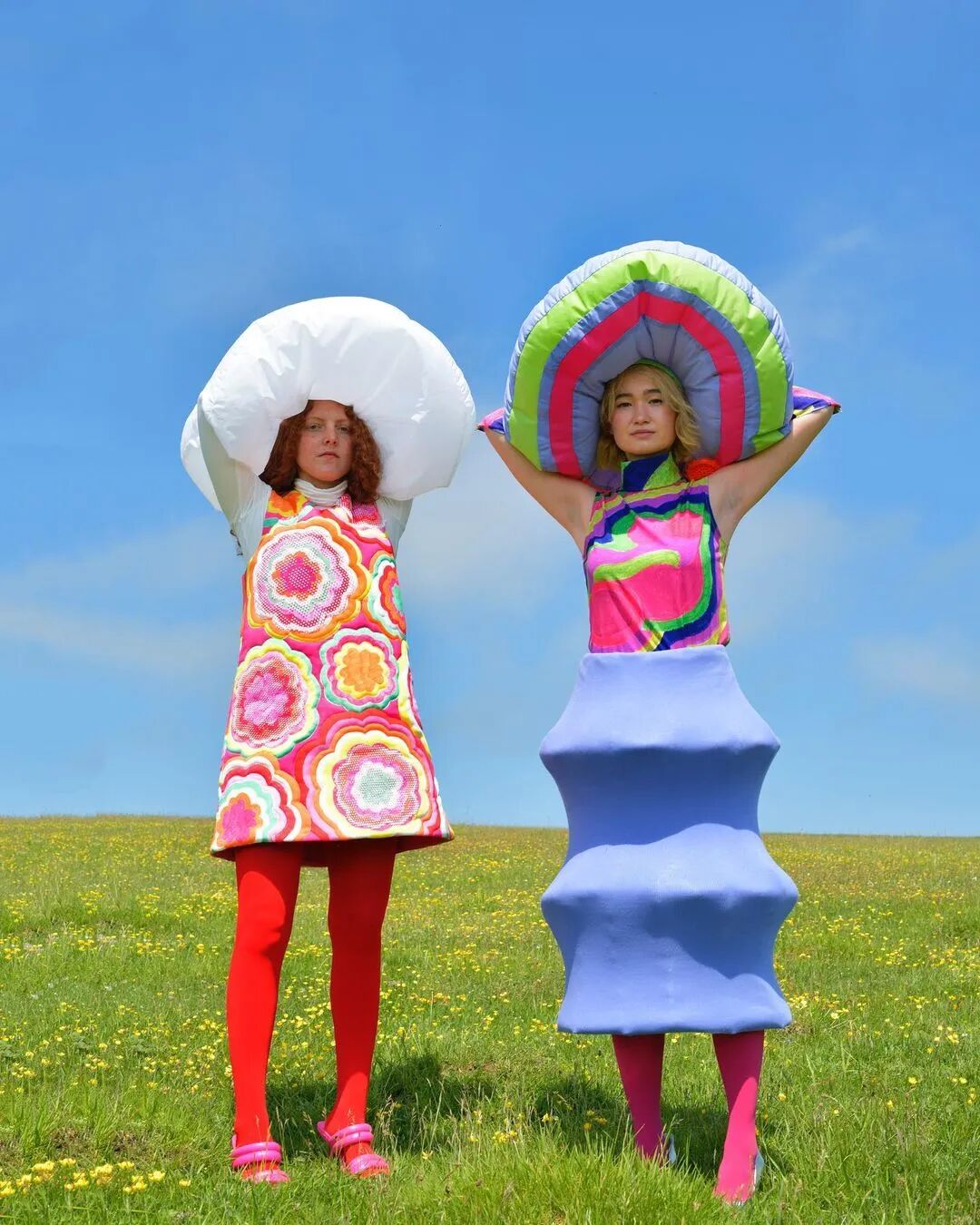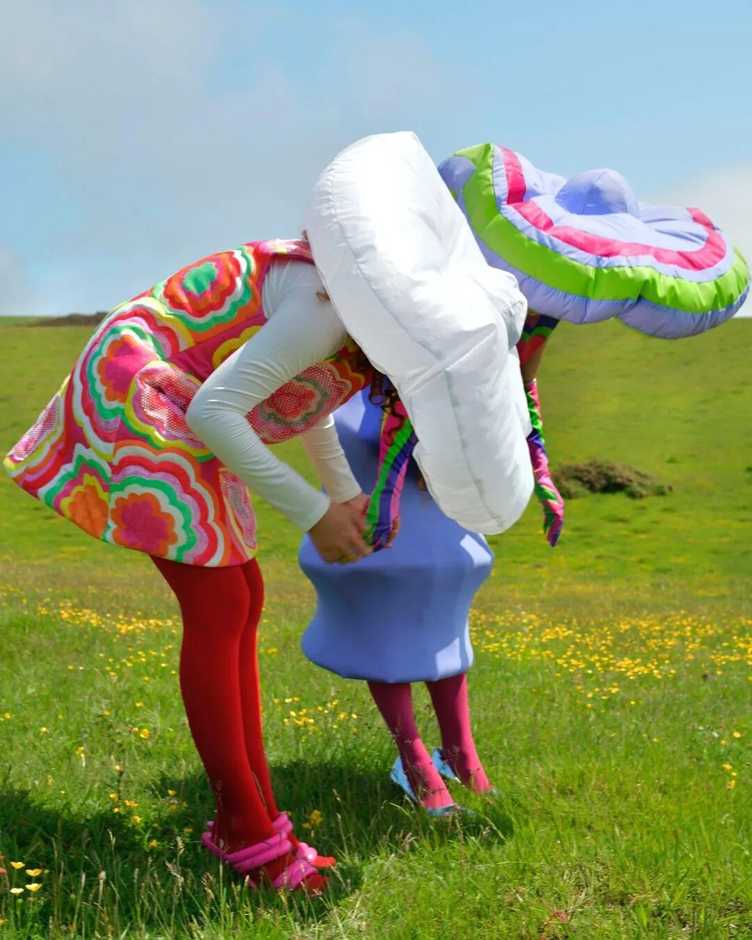 包括通过填充泡沫和海绵来打造夸张的充气形状和廓型……调皮、怪诞的趣味元素,一方面也映射着生活中的幻象与现实。