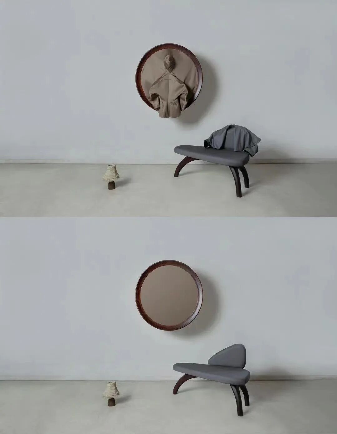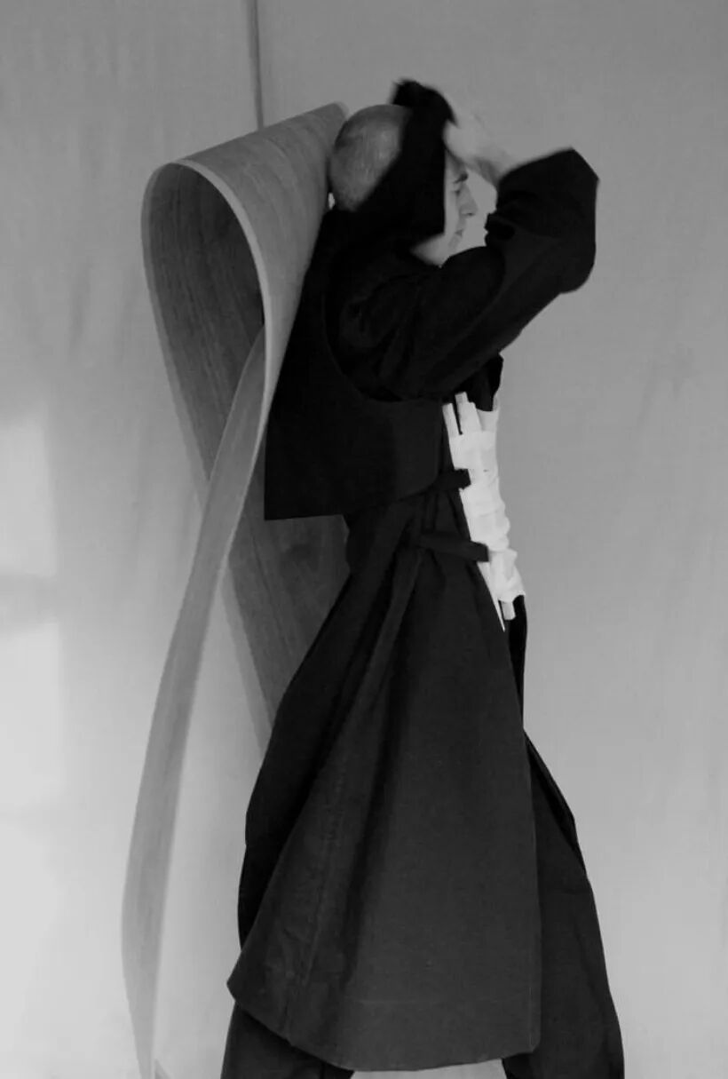 设计师Shanti Bell的研究生系列着眼与时尚与家具之间的关系,他从家具设计师Martino Gampher中获得灵感,开发了一种制作弯曲木材和木雕的方法。