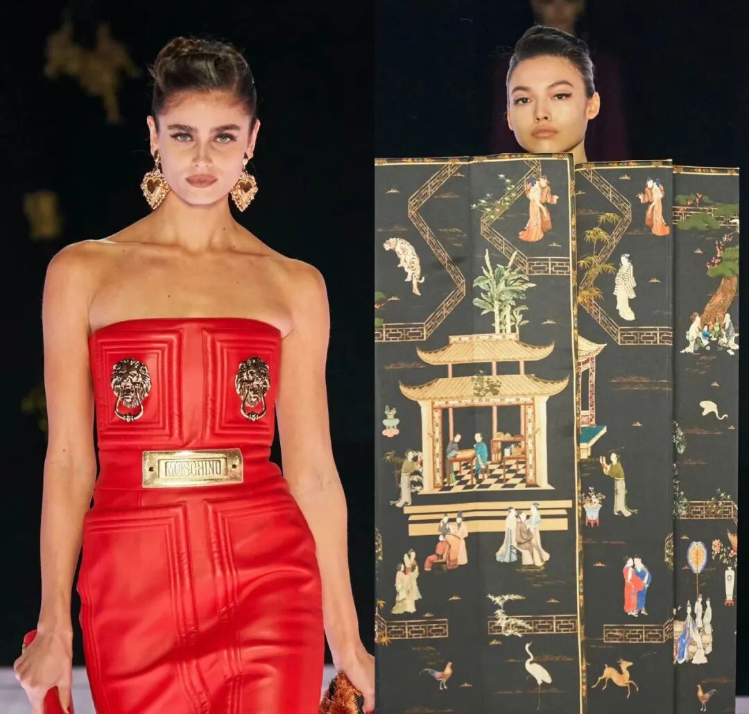 𝐌𝐨𝐬𝐜𝐡𝐢𝐧𝐨 𝐅𝐖𝟐𝟐以《2001太空漫游》电影的卧室场景为创作主题,大开脑洞!卧室里的所有家具都变身充满戏剧张力的新季时装,竖琴、抽屉、蜡烛台、台灯、花瓶、钟表、沙发都是衣服,还出现了东方元素的屏风和辅首衔环。