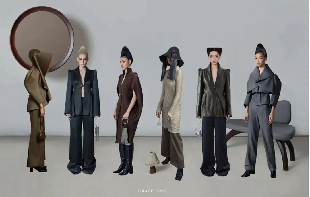 Grace ling 着迷于超现实主义,也沉迷于3D雕塑和技术的研究。Grace将其定义为“生物形态剪影”,运用超现实主义,通过衣服中的人为元素来讲述古怪却优雅的女性气质。