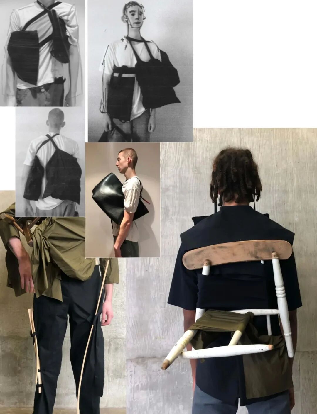 他参考椅子的曲线和结构,用人体来承载这些廓形的重量,轻质棉上的织物构造和材质的力量形成对比,捕捉男性细腻气质的同时从而探索阳刚之气的重量。