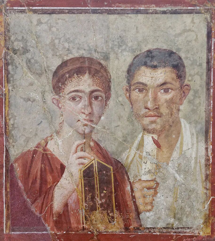 《面包师与他的妻子》Baker and His Wife,挖掘于庞贝城,公元1世纪,48.9 x 41cm。那不勒斯国家考古博物馆(Museo Archeologico Nazionale di Napoli)。