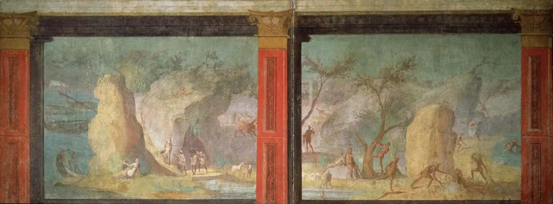 罗马埃斯奎利诺山(Esquiline Hill)房屋壁画《奥德赛》故事(Odyssey)(局部),约公元前1世纪中期,梵蒂冈博物馆(Vatican Museums)。