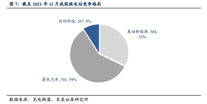 据东吴证券,截至2021年11月,蔚来和奥动新能源换电站的建设规模分别为701座和384座,伯坦科技以107座排名第三。