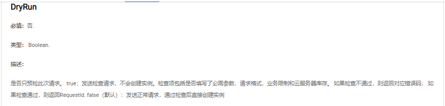 下面几张图是我用RunInstances测试过程中开了DryRun为true: