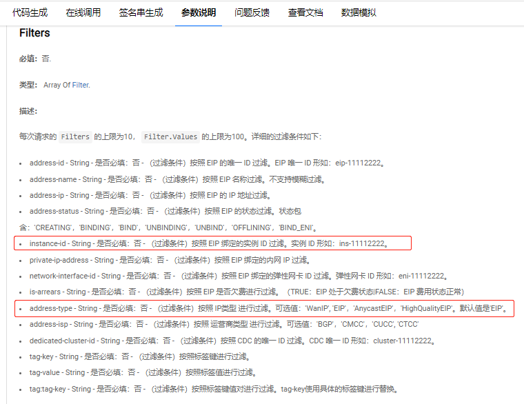 http://console.cloud.tencent.com/api/explorer?Product=vpc&Version=2017-03-12&Action=DescribeAddresses