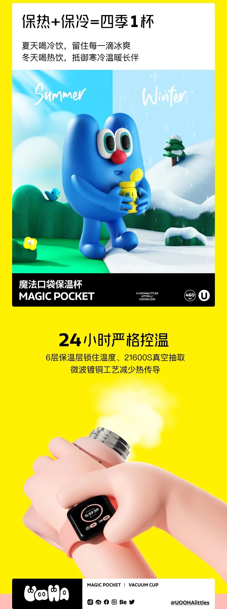 设计风格非常潮流时尚,运用了大量的对比色,特别是黄黑搭配,还有一些英文手写体辅助,在加上C4D的IP形象设计,整体视觉非常有品牌质感。一看就是大神操作。