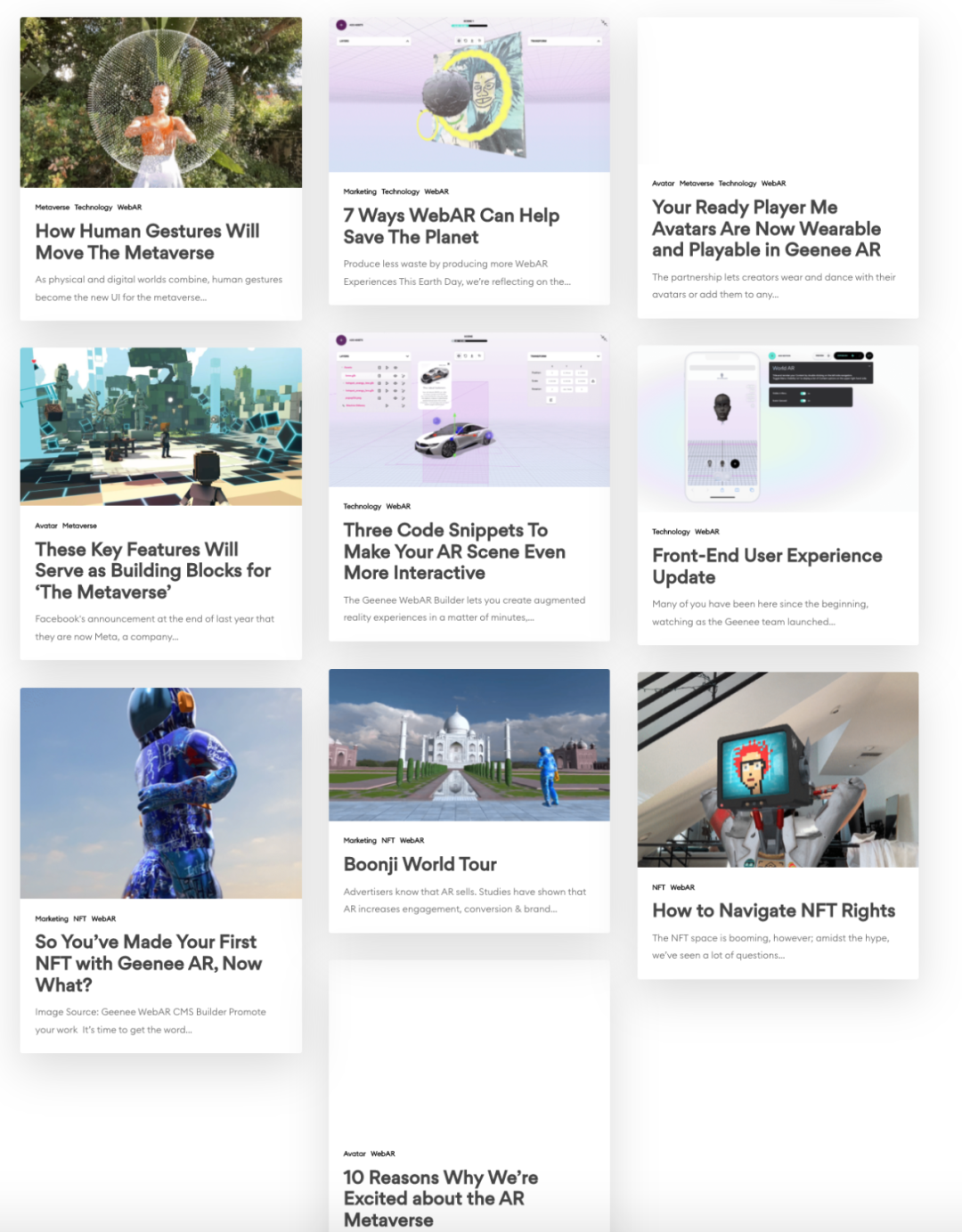 geenee 官方博客内容质量也非常高,包含 WebAR 应用热点、SDK 扩展开发教程、趋势预测等文章,进阶学习资源也非常丰富。