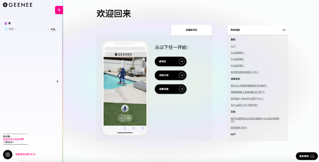 有社群成员推荐了一款 Web AR 工具 Geenee。该工具是一个无代码平台,即使是非技术创作者也可以快速、经济且轻松地构建和发布 webAR 体验项目。