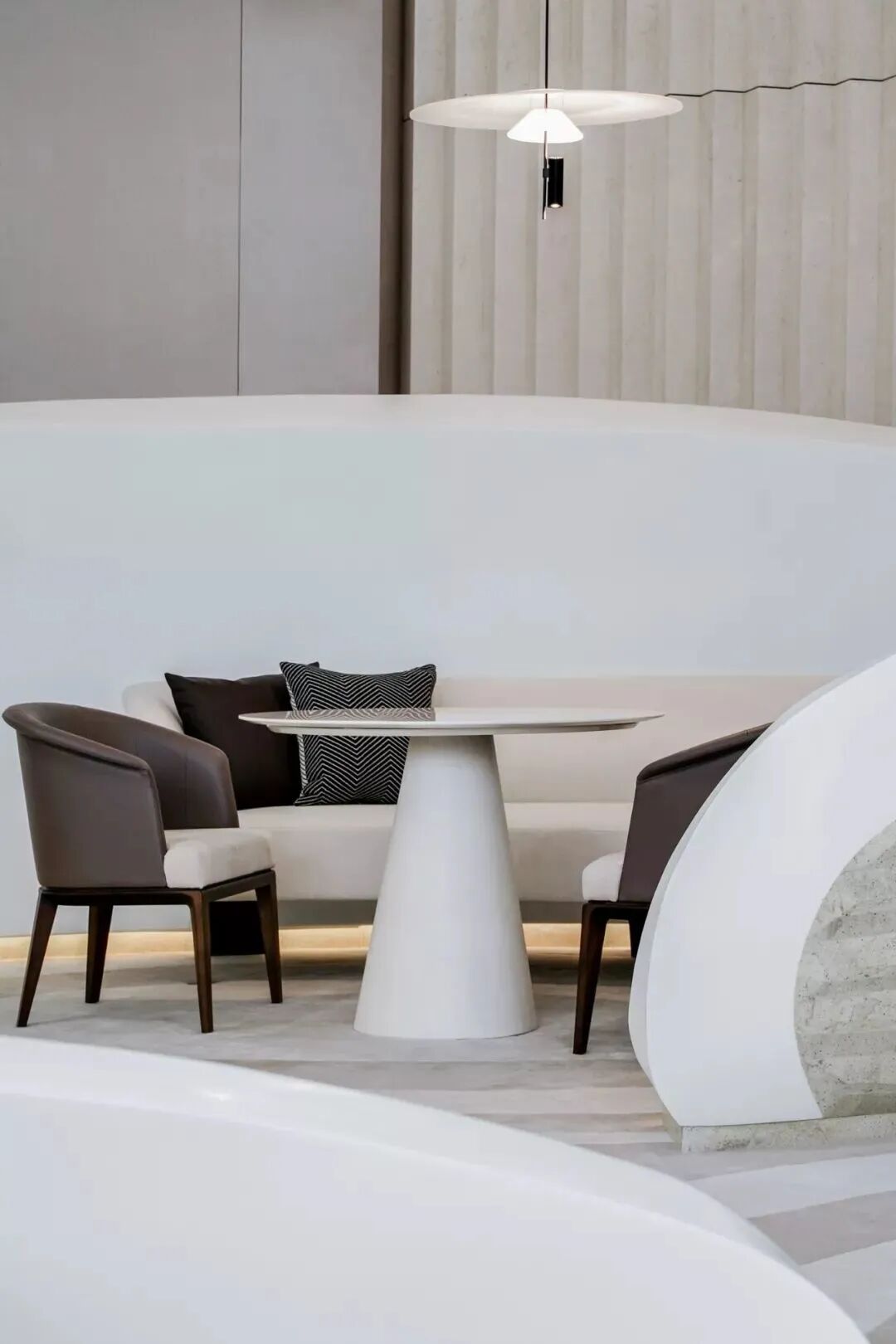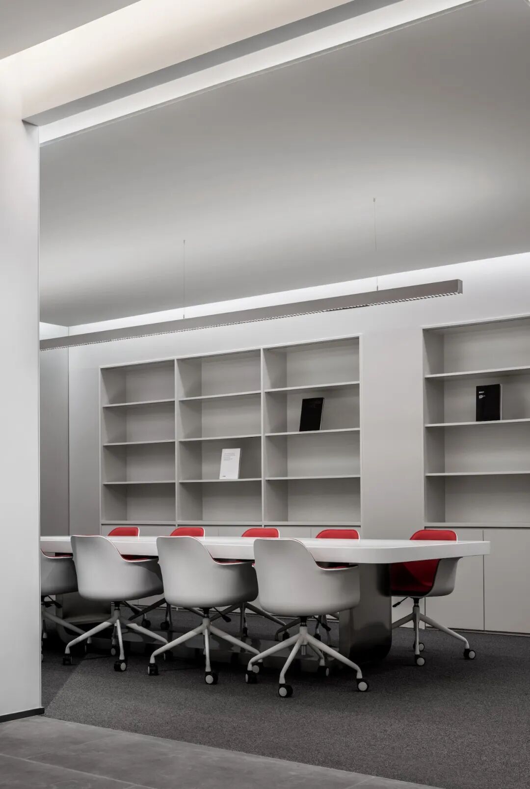 人性化的灯光功能铺垫,融合雅白的办公家具陈设,将一个极简而舒适的现代办公场景徐徐展开——不止有会议、商谈、演讲等高效工作的使用场景,更是为热爱创意的职场人士增添了娱乐模式,挖掘出未来办公空间的全新属性。