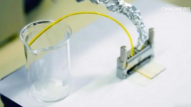 ©chalmers, 2022,MOST能源系统连接到一个微米级的热电发电机,可以产生电能。查尔姆斯理工大学/Per Erséus, Språng kommunikation