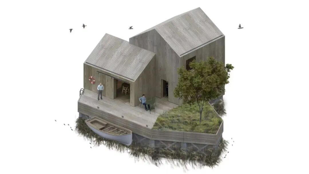 丹麦海洋建筑工作室 MAST 开发了一种,比传统方法更加灵活、可持续的浮动建筑系统——Land on Water。MAST的总部设在哥本哈根,其设计系统由模块化容器组成,可以填充各种浮动元素,类似于建筑业中使用的石笼网。Land on Water 是一个用于建造漂浮房屋的扁平包装模块系统,由回收的强化塑料制成,可以在世界各地运输,以不同的配置组装适应各种建筑类型。