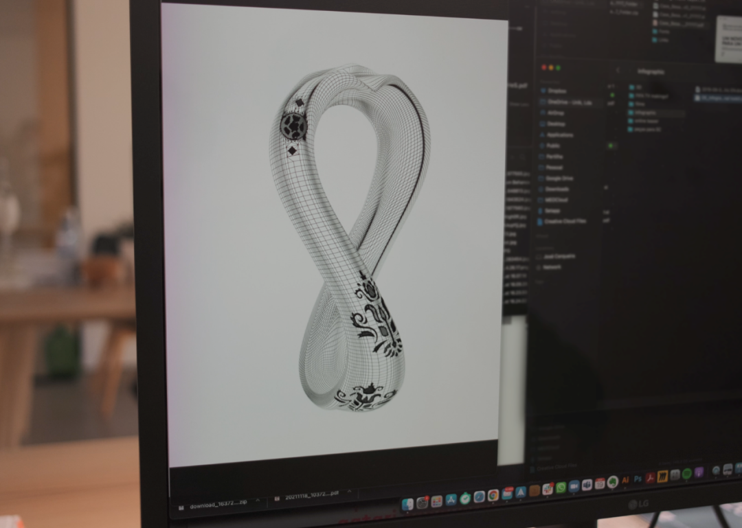根据Unlock Brands团队解释,除了其形状灵感来自世界杯官方奖杯和沙漠沙丘的起伏线条外,该标志还具有其他含义,不用特别仔细去看,它也是一个无限符号,代表卡塔尔来自世界各地的文化之间的共享,以及在活动结束后很长一段时间内将持续存在的连通性。