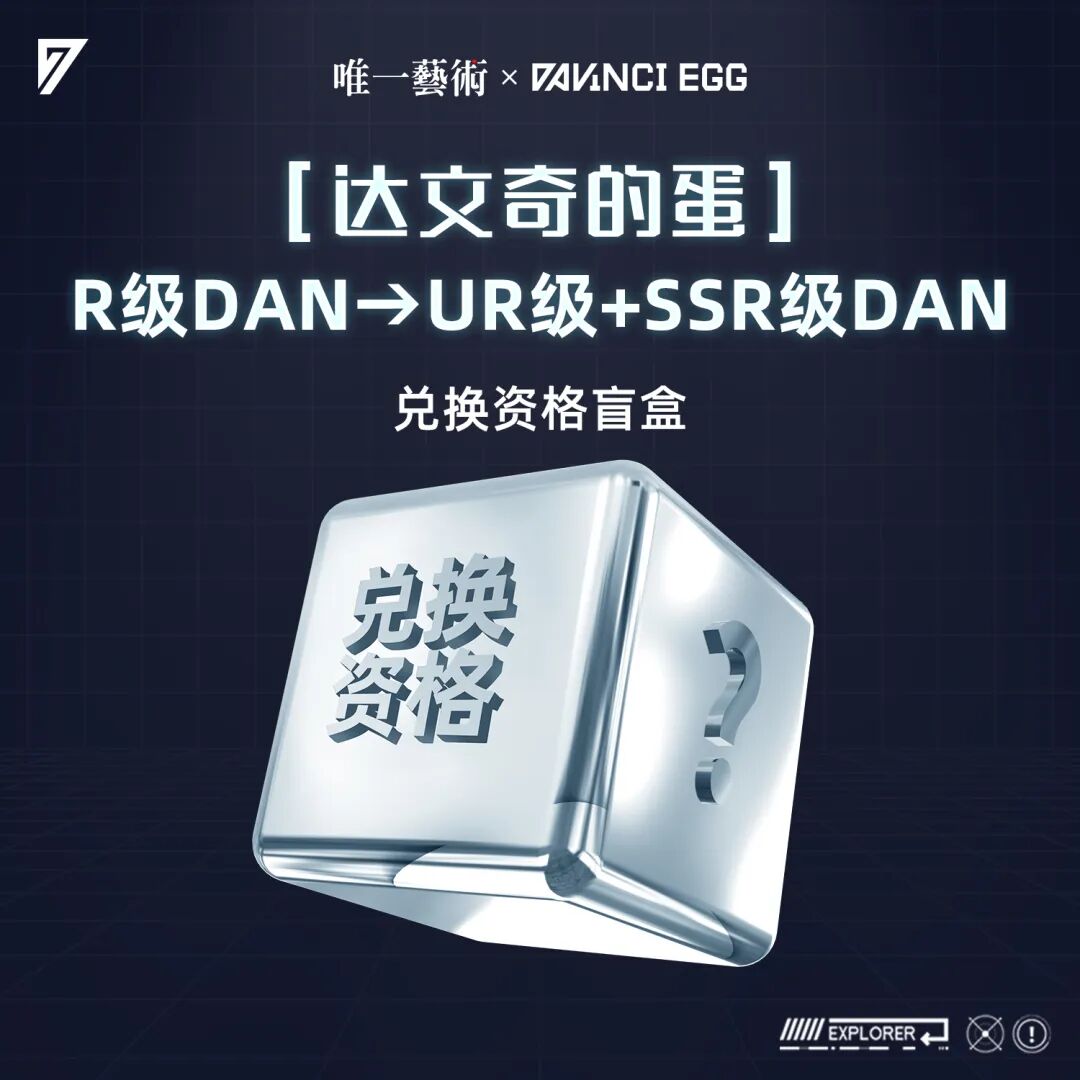 报名途径:用户通过唯一艺官网活动页面提交由本人持有的40个R级D-A-N进行锁定;活动通道将于8月4日18:00开放,届时请移步唯一艺术平台官网首页参与活动。