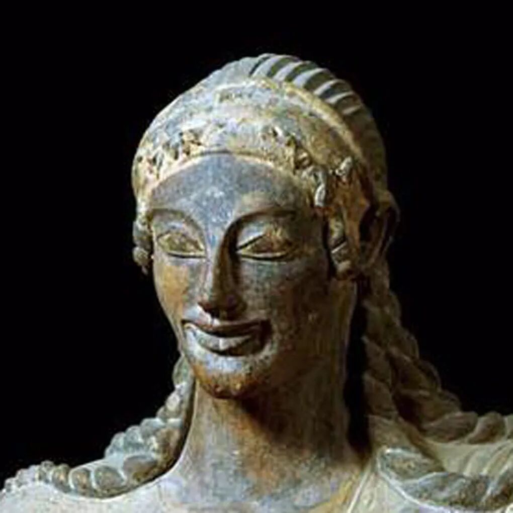 从题材看作品显然受希腊神话的影响,雕像脸部的微笑也很像希腊古风式的微笑,但从人物姿式和衣纹处理效果来看又与希腊不同:很薄的覆盖身体的衣纹轻松活泼,具有道地的伊特鲁里亚民族特色。