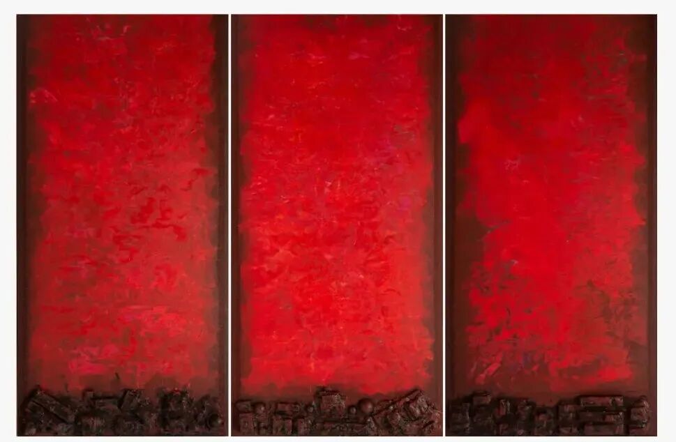 《对话罗斯科之红》 200x300cm-三联拼接 水墨纸本、综合材料 2012年