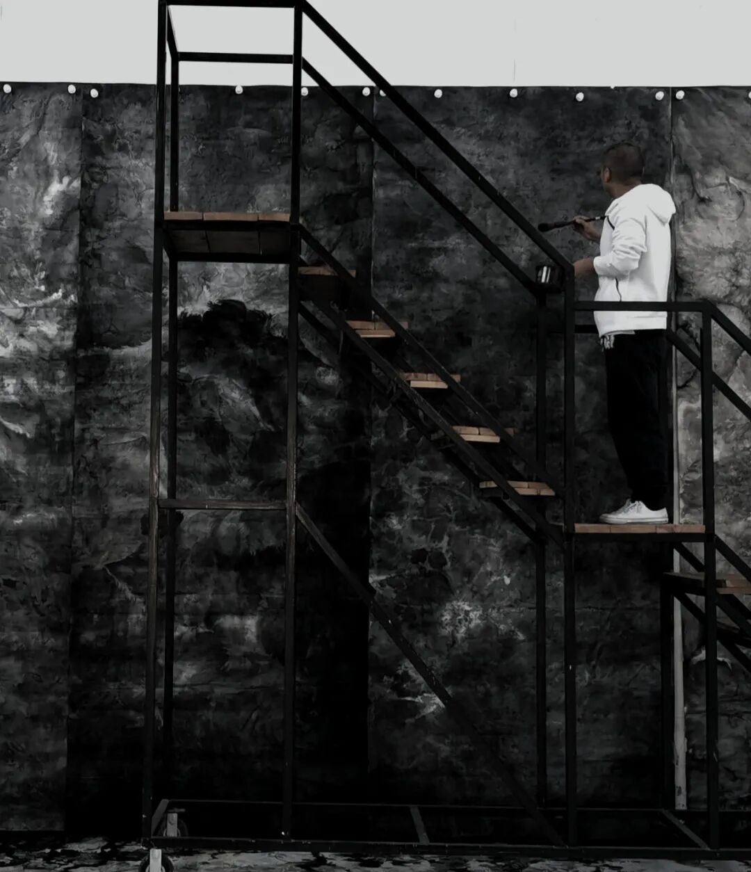 邵泳游走过几个城市、几个工作室,从最初的禅意,水墨青花、抽象、都市到现在的多个系列同时推动创作,因为之间有两个类似工厂车间的大工作室,也方便将水墨又扩展至装置,扩展到空间中。