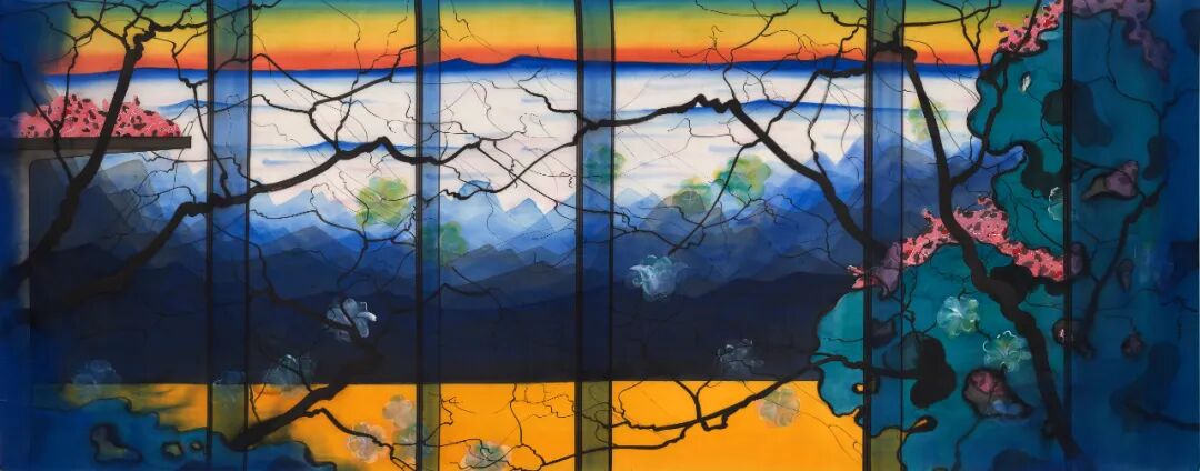 《山水国度之二》 138x280cm 纸本水墨设色四联 2019年
