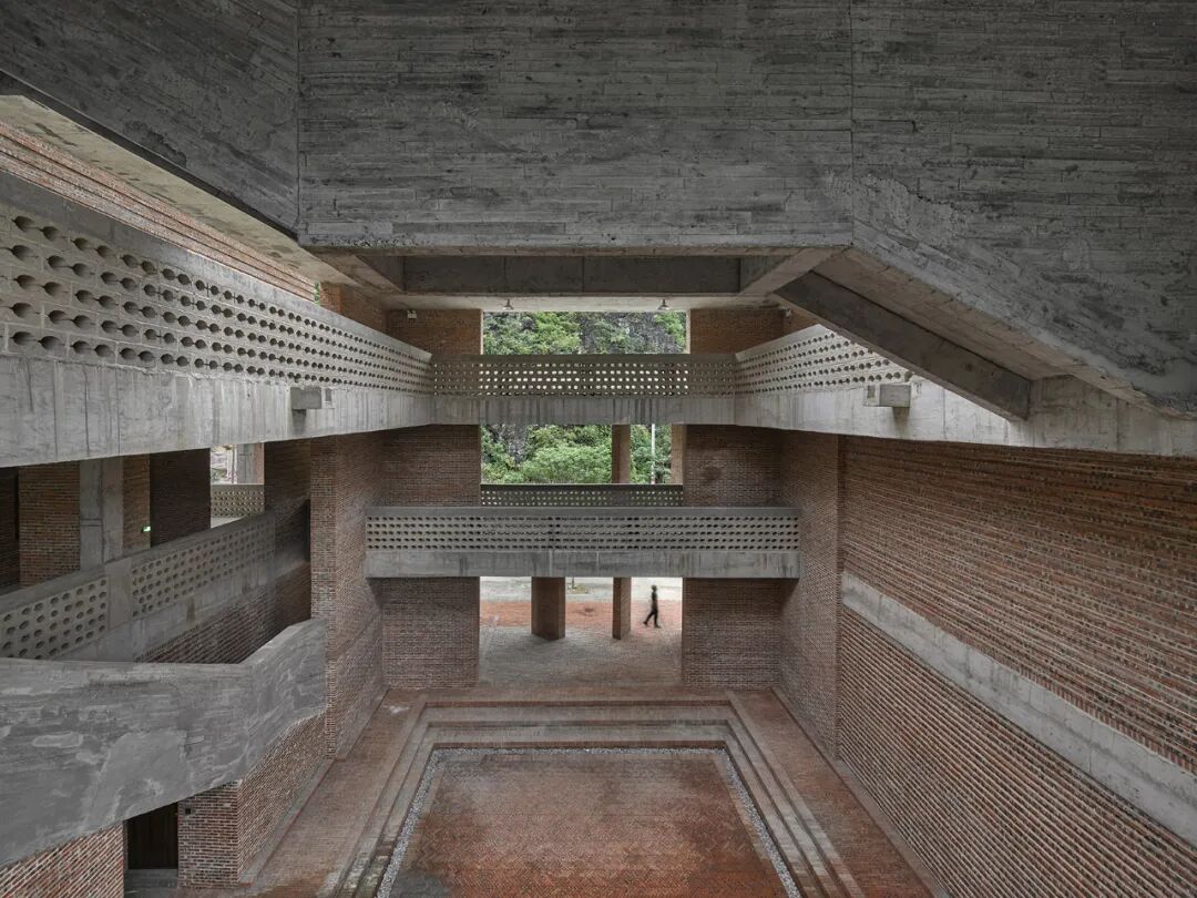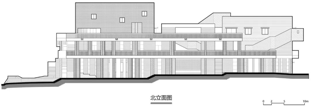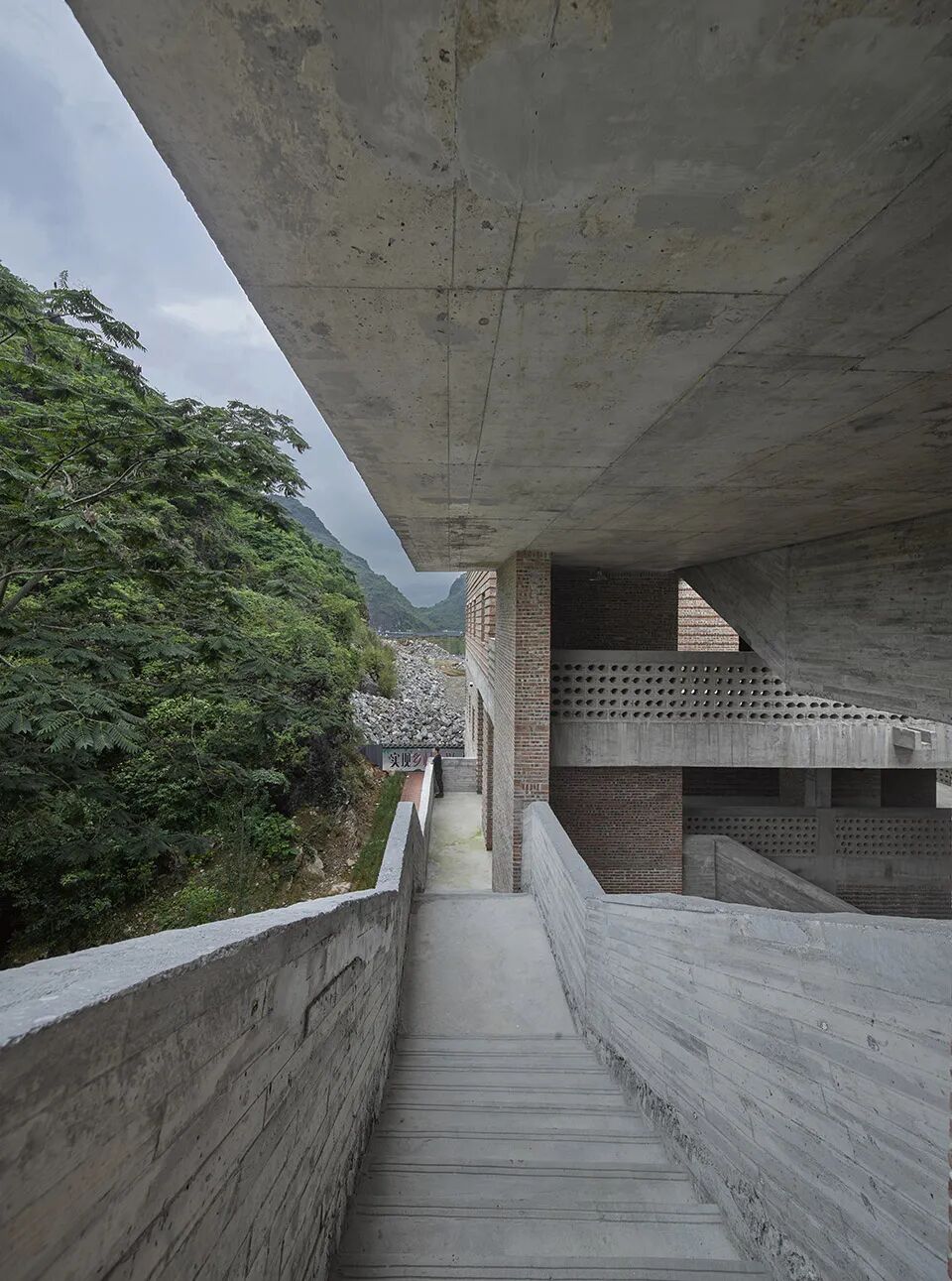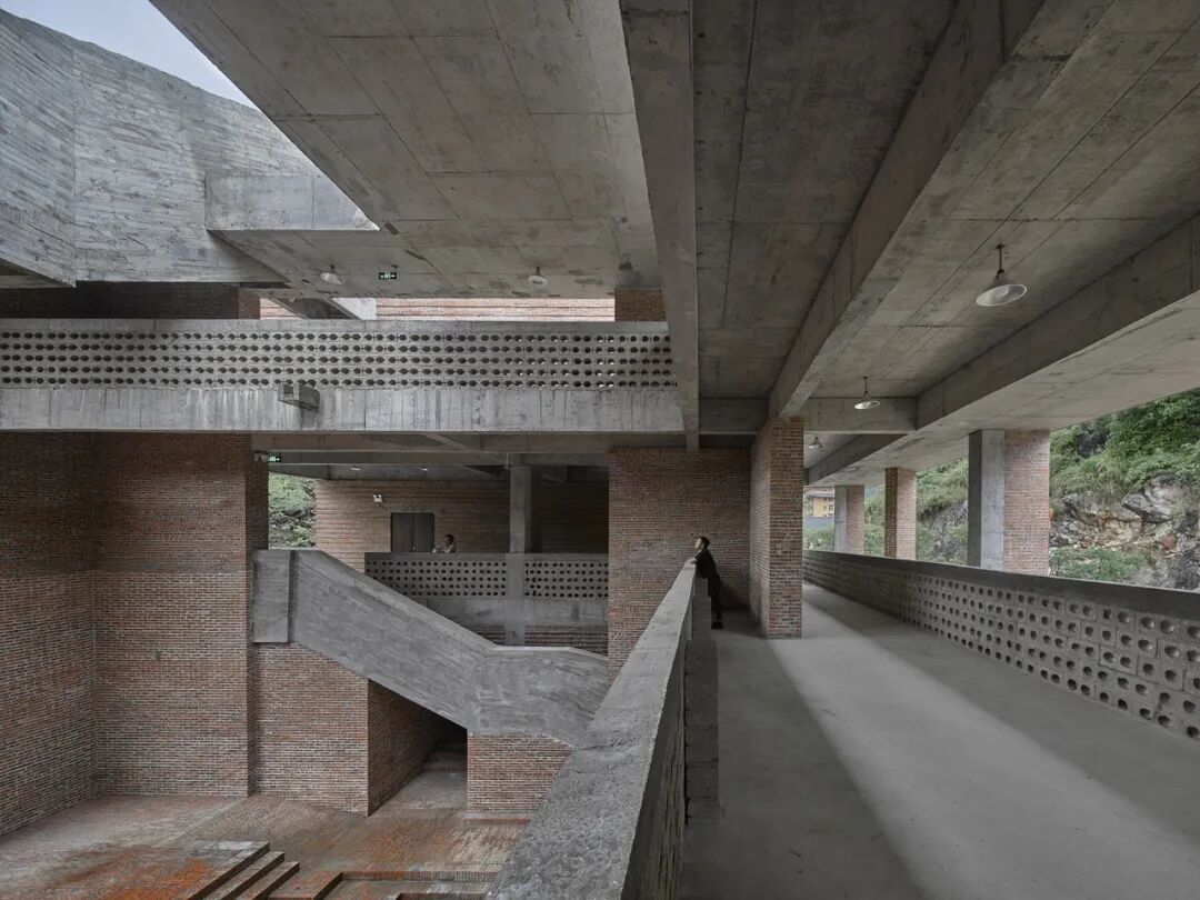 檐廊与楼梯:檐廊和楼梯是建筑中比较突出的空间构成要素,形成建筑由外而内的立体循环路径。檐廊空间在适应当地夏季炎热多雨气候的同时,也加强了建筑的开放性和公众参与性。