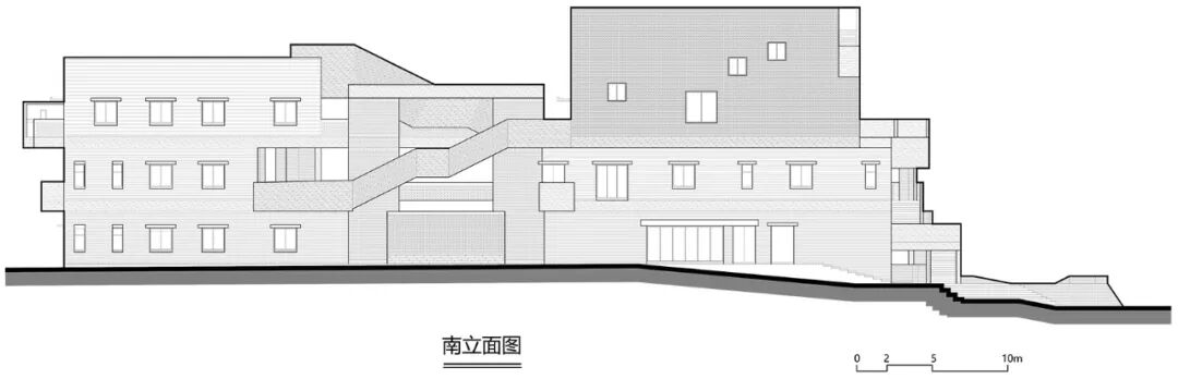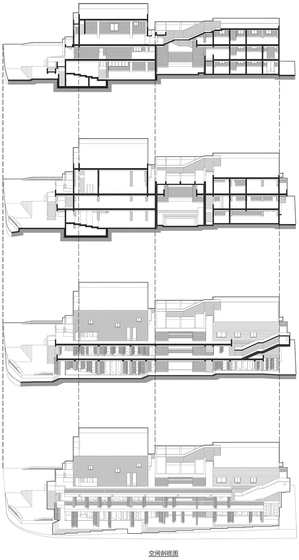 同时,设计中楼梯不仅仅承载着竖向交通功能,也是作为一个空间要素与图式语言植入建筑空间。