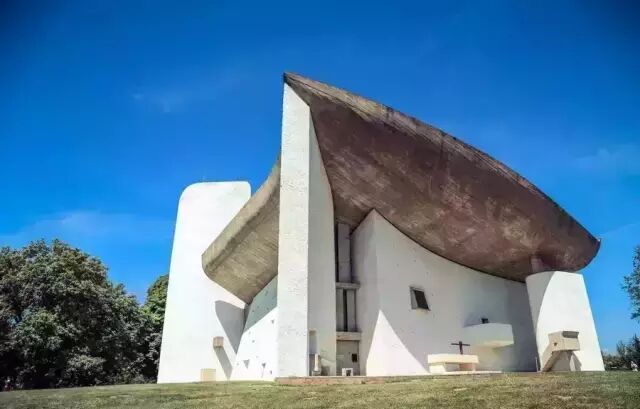 1944年,法国朗香的一座教堂被炸毁,随后柯布西耶接到委任设计一座新教堂。